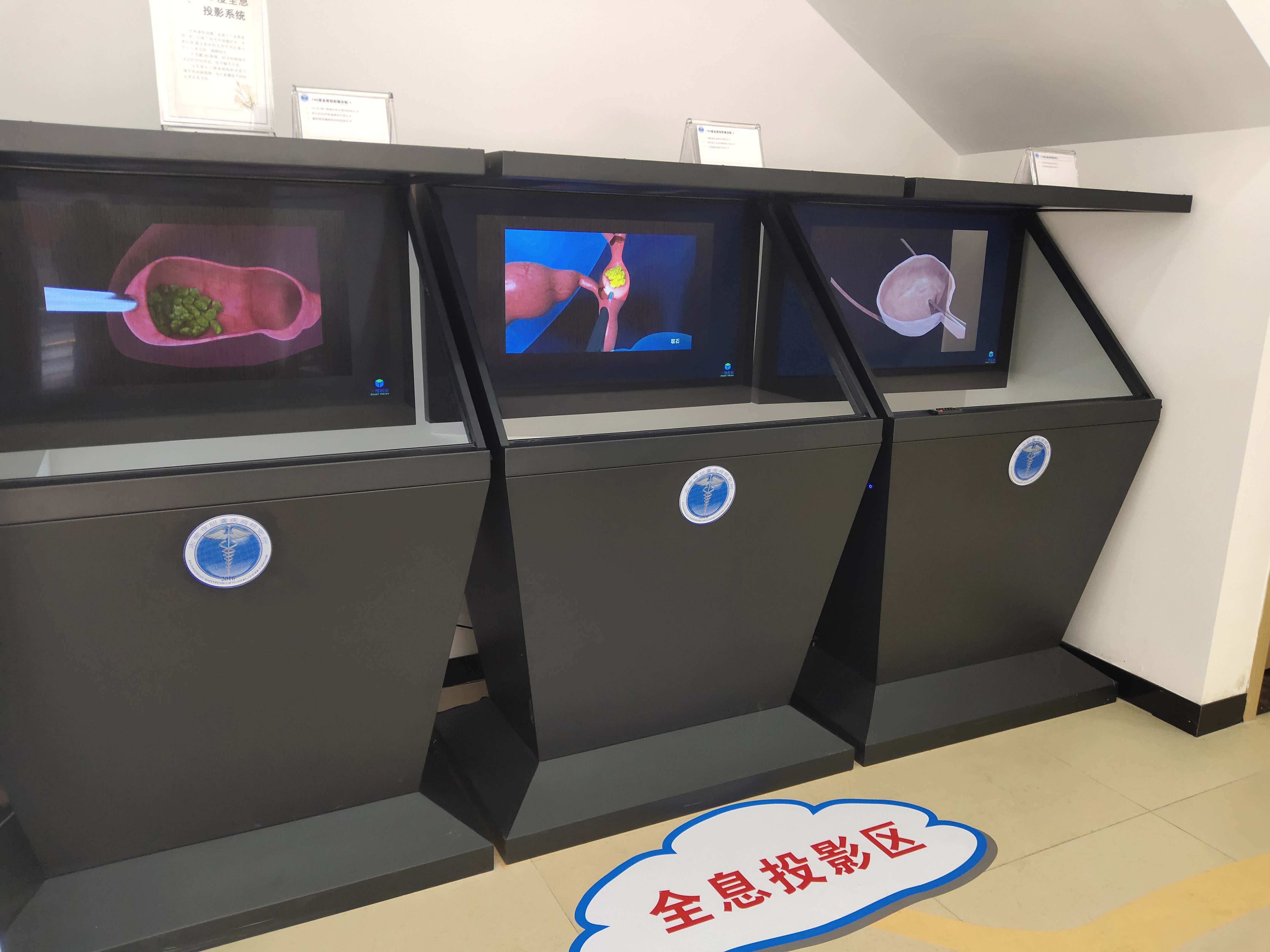 通(tōng)過180度的(de)全息展示3D醫(yī)療模拟內(nèi)容,可(kě)以直觀簡單的(de)表達數(shù)字醫(yī)學3D的(de)內(nèi)容,而全息顯示是(sαhì)可(kě)以通(tōng)過不(bù)戴眼鏡來(lái)觀看(kàn)的(de),在展示的(de)場(chǎng)景下(xià)對(duì)于內(nèi≠)容和(hé)方式都(dōu)是(shì)一(yī)種很(hěn)好(hǎo)的(de)選擇,通(tōng)過觸摸一(yī)體(tǐ)機(jī)可(kě)以方便的(de)切換內(nèi)容,也(y←ě)給參觀者帶來(lái)不(bù)一(yī)樣的(de)互動體(tǐ)驗。